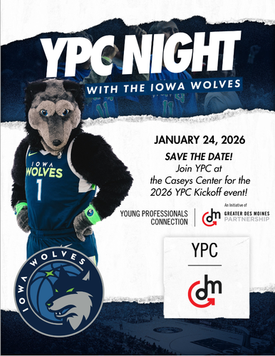 Looking to get connected in 2026? Attend YPC's 2026 Kick-Off Party! It is a chance to connect with other young professionals in Des Moines and to discover what YPC has to offer in the new year! The Iowa Wolves are hosting YPC at the Casey's Center on Saturday, January 24th beginning at 6 PM. The game starts at 6:30PM!